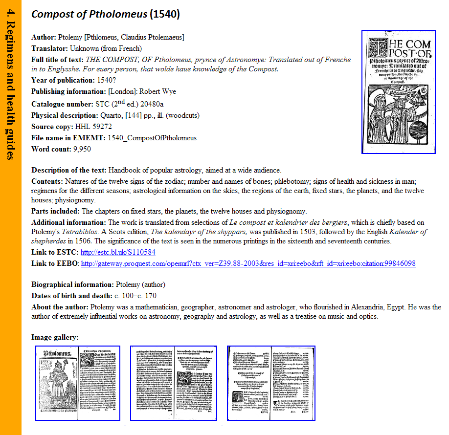The catalogue entry of the text in the corpus of Middle English Medical Texts contains the following information: