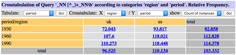 Table 1. Frequency of noun-noun sequences in the ARCHER corpus.
